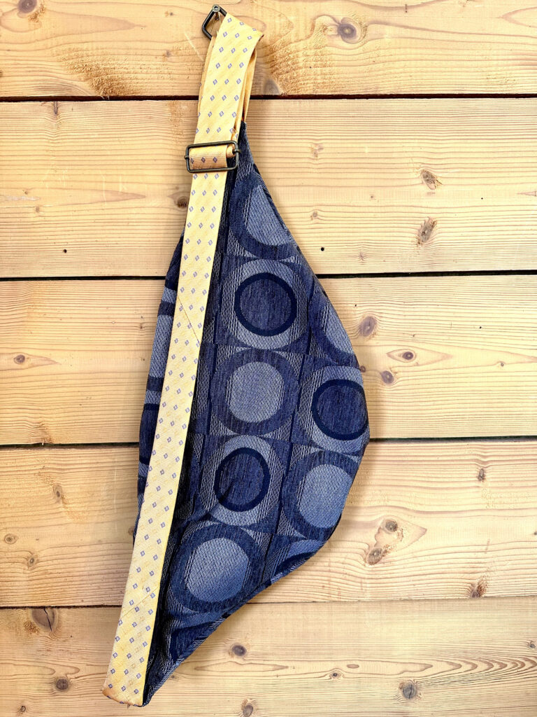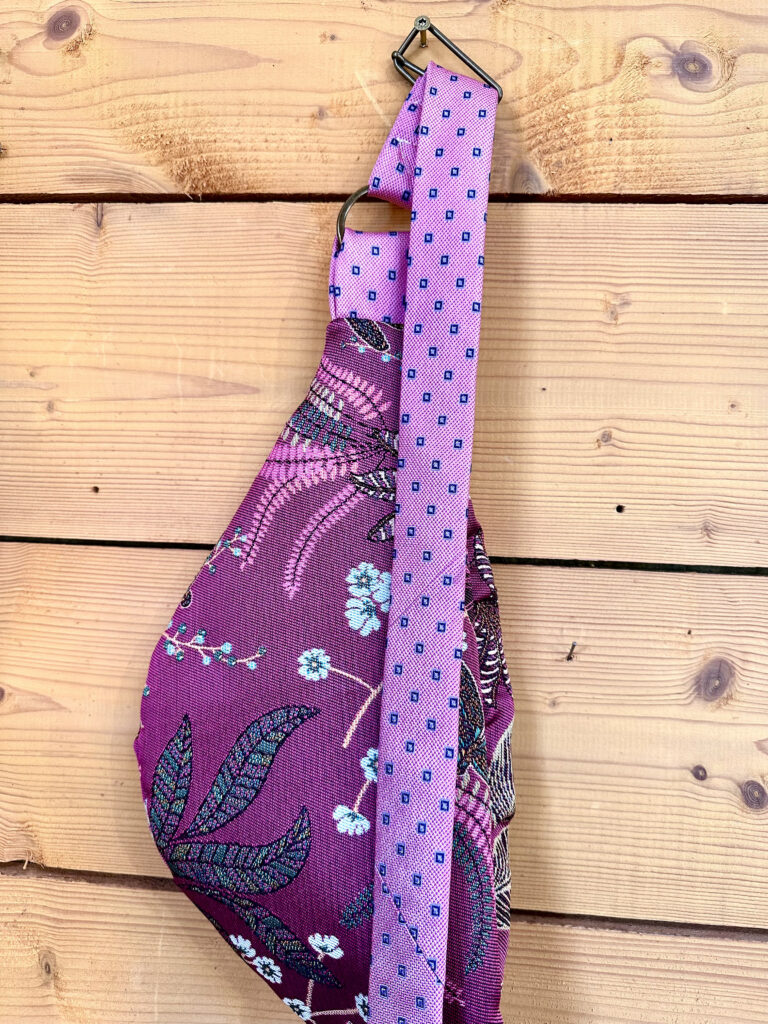 Il y a des cravates qui ont connu des bureaux feutrés, des dimanches en famille, des rendez-vous importants. Plutôt que de dormir au fond d’un tiroir, elles deviennent sangle.