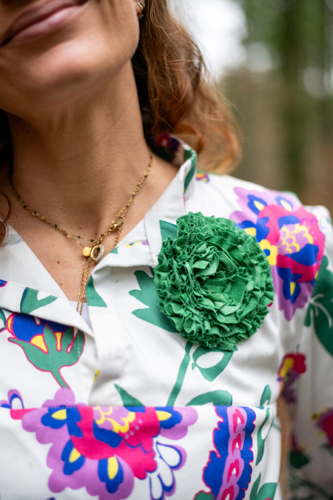Le chemisier Campanule est né d’une envie simple : apporter de la joie au quotidien. J’ai voulu créer une pièce qui reflète parfaitement l’esprit de mes créations : des vêtements colorés, confortables et féminins, fleuris, amples, avec ce mélange assumé de confort et de romantisme.